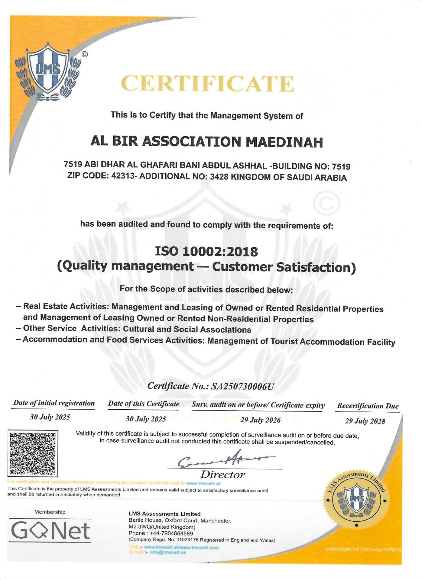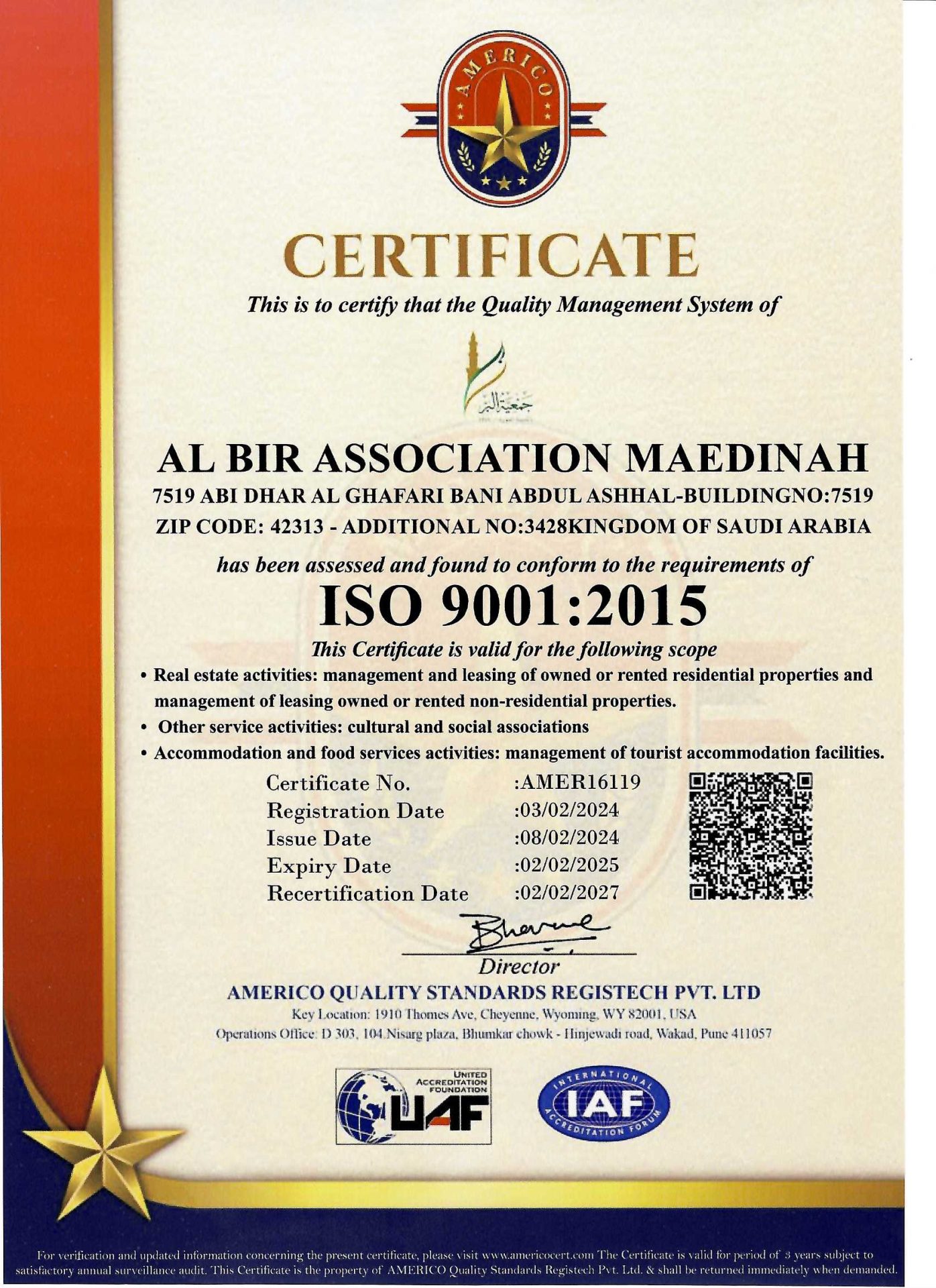أنشأت جمعية البر مبناها السكني التجاري الثاني بالمنطقة المركزية المجاور للمسجد النبوي الشريف وقامت بتأجيره أيضاً ليتم توزيع إيرادات المبنى على فقراء المدينة المنورة من خلال أنشطة الجمعية المختلفة.
